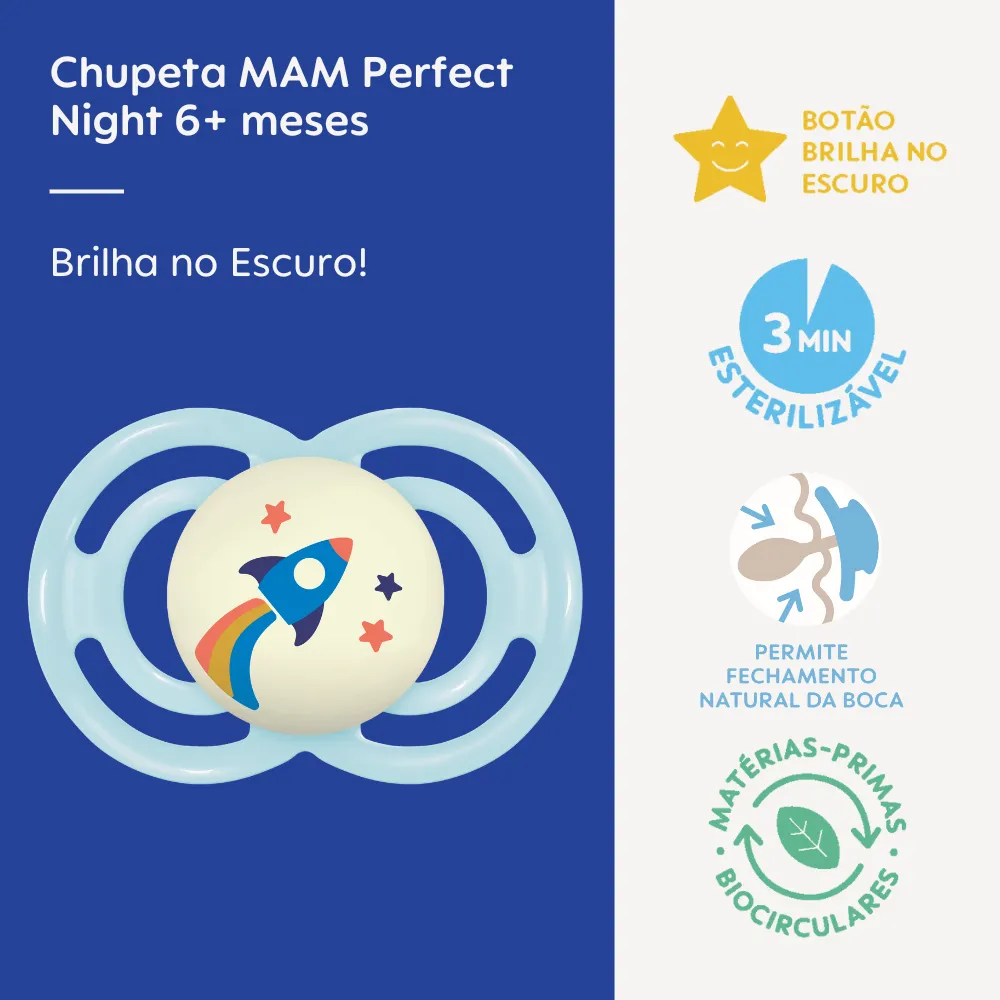 Chupeta MAM Perfect Night 6+ meses - Brilha no Escuro - Embalagem Unitária