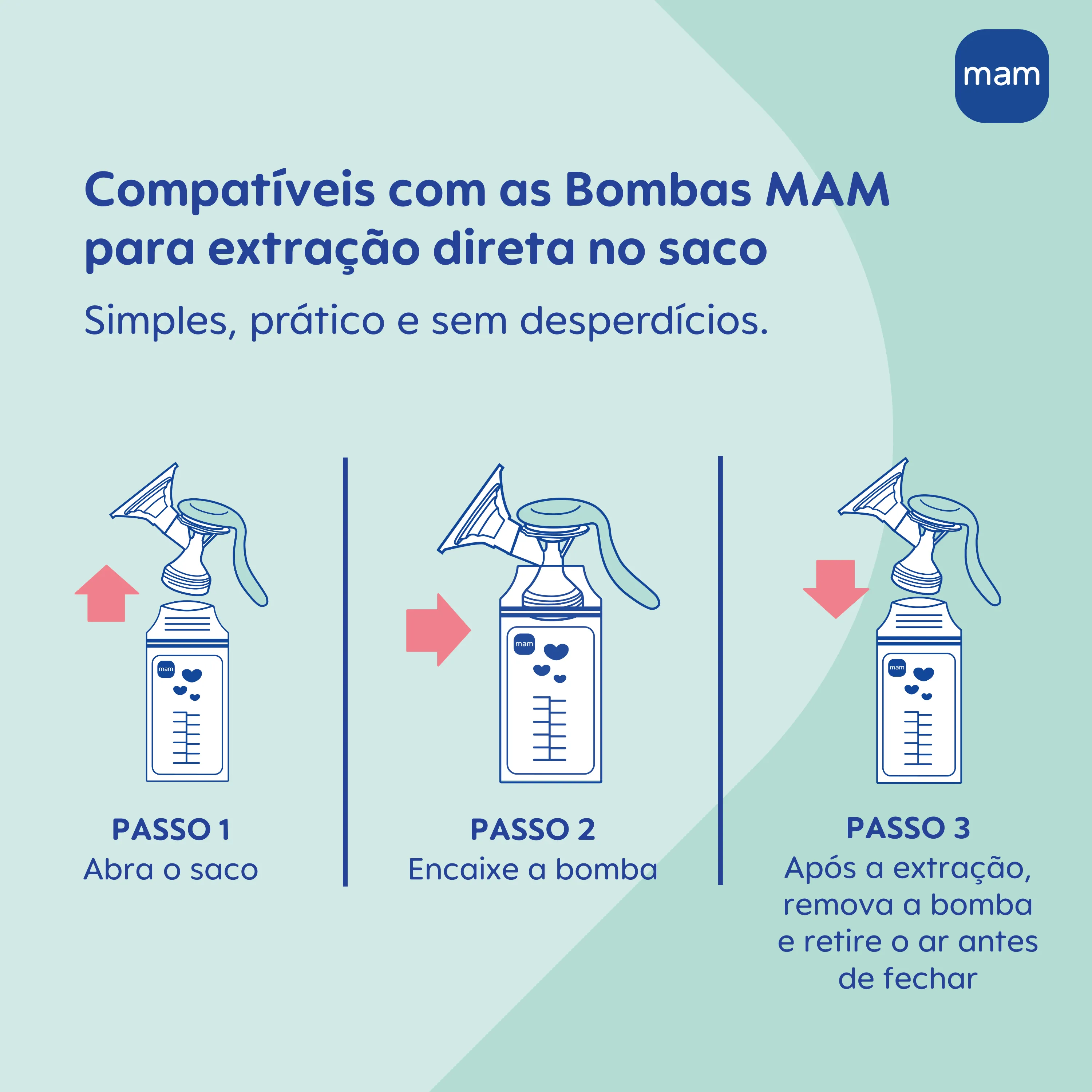 Compatíveis com as Bombas MAM para extração direta no saco, mas também funcionam perfeitamente para armazenar o leite extraído em outros recipientes.