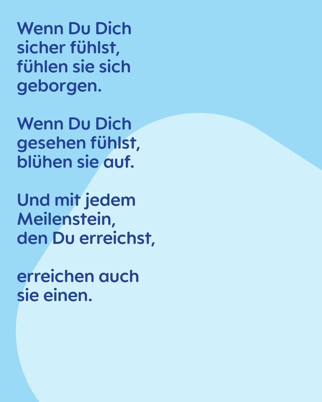 Wir wissen, dass die Entwicklung eines Kindes eng mit dem Wohlbefinden derjenigen verbunden ist, die es grossziehen. Es ist eine gemeinsame Reise. Wenn Eltern sich dabei unterstützt fühlen, können auch ihre Babys aufblühen.