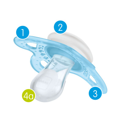 Comprobar el chupete antes de cada uso, sobre todo, cuando el bebé ya tiene dientes, y sustituirlo ante el primer indicio de desgaste o rotura. Recomendamos reemplazar el chupete después de uno o dos meses de uso por razones higiénicas y de seguridad del bebé.