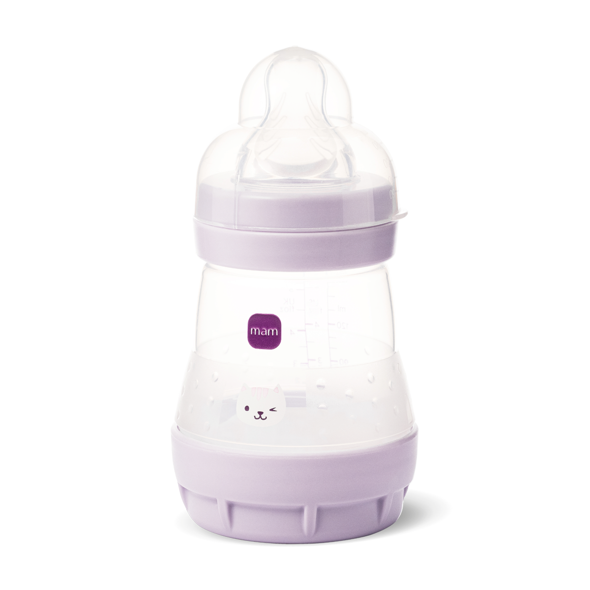 The MAM nipple is easily accepted by 94%* of babies thanks to its SkinSoft™ silicone surface and its unique flat shape, which feel so familiar to babies. This facilitates a switching between breast- and bottlefeeding.