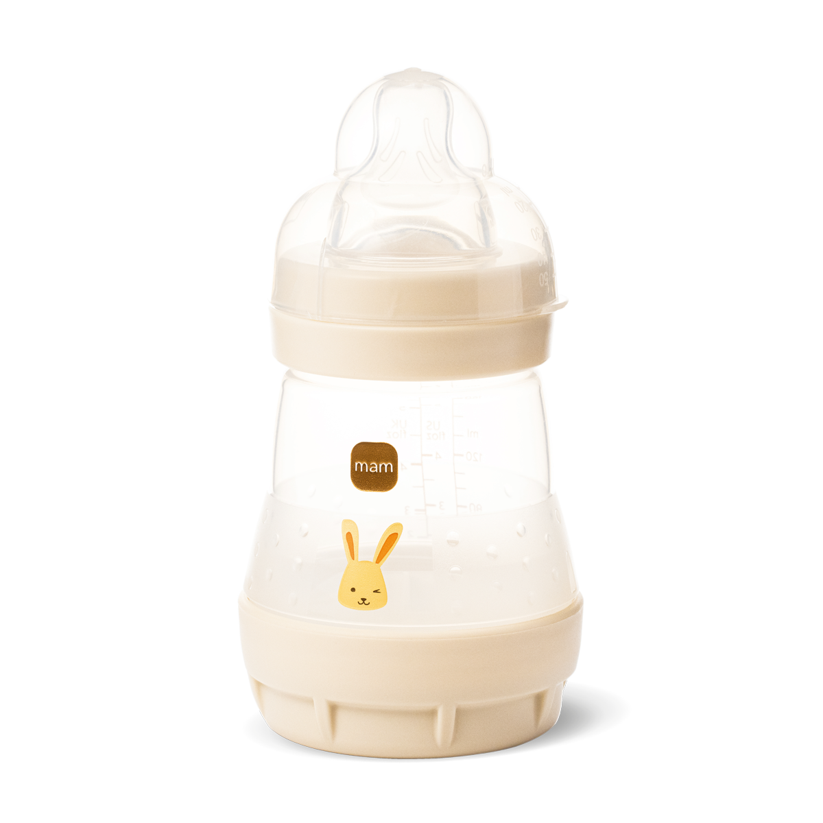 The MAM nipple is easily accepted by 94%* of babies thanks to its SkinSoft™ silicone surface and its unique flat shape, which feel so familiar to babies. This facilitates a switching between breast- and bottlefeeding.