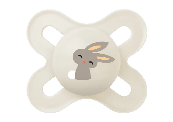 All MAM pacifiers have a flat and symmetrical nipple shape: there is no ‘top’ or ‘bottom’. This special nipple shape ensures that our pacifiers are always correctly positioned in the babies’ mouth.