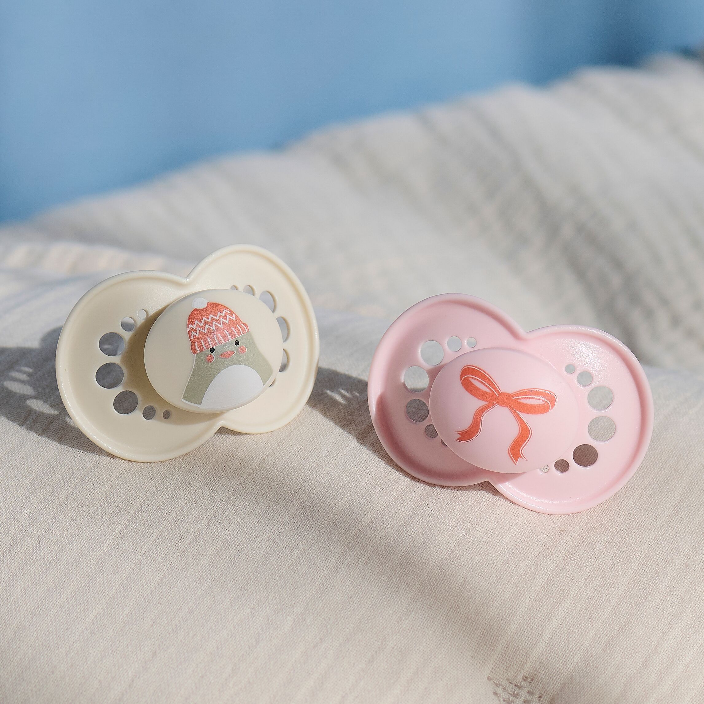 Yes, our MAM pacifiers support baby’s healthy jaw and teeth development. MAM collaborates with medical experts from various disciplines to help develop and design innovative, physiologically shaped pacifiers that suit baby’s various developmental stages. All MAM pacifiers have a flat and symmetrical nipple shape: there is no ‘top’ or ‘bottom’. This special nipple shape ensures that our pacifiers are always correctly positioned in the babies’ mouth. MAM pacifiers have a ventilation system in the teat. In more detail, when your baby closes its mouth down on the teat, the air from inside the nipple is pushed out through the ventilation system, thereby flattening the nipple, and adapting to the baby´s individual oral cavity.