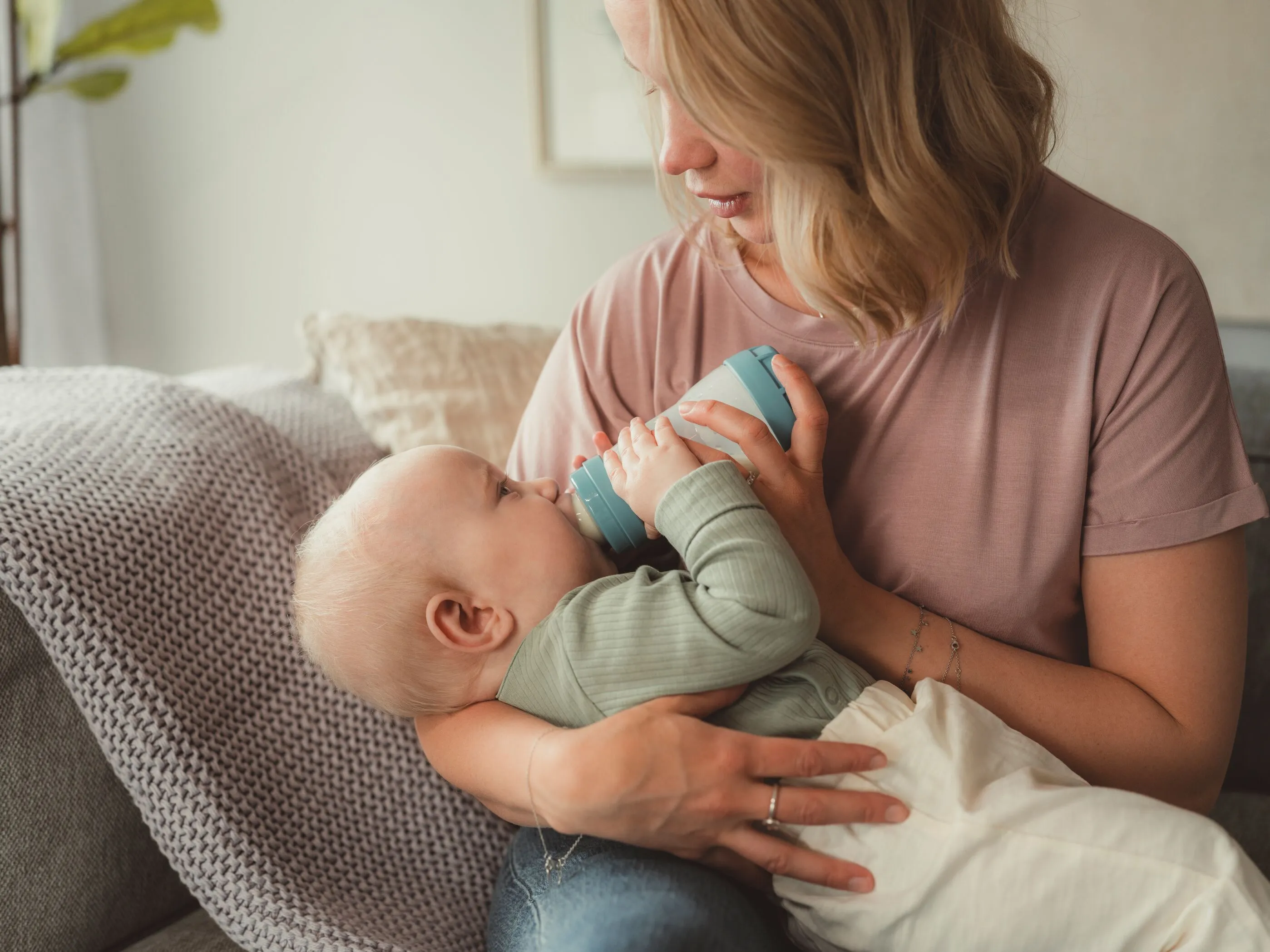 Interrompere il flusso: quando il bambino rallenta o smette di succhiare, inclinare delicatamente il biberon verso il basso per interrompere il flusso del latte. Questo permette al bambino di respirare e valutare se ha ancora fame o è sazio.